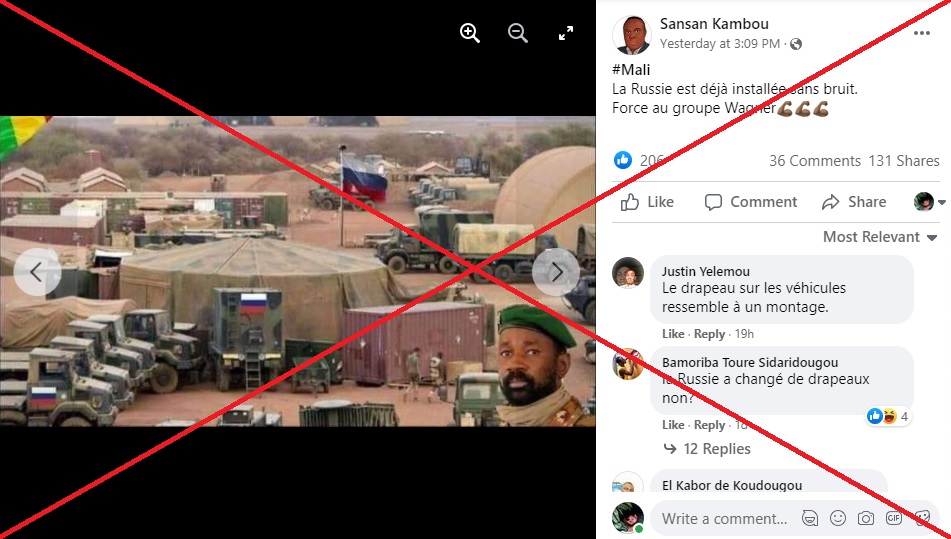 La photo censée dévoiler la première base du groupe russe au Mali a été partagée plus de 250 fois en moins de 24 heures sur Facebook (1, 2, 3, 4...).
