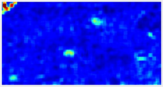 Une analyse technique de l'image virale, réalisée grâce à l’outil d’analyse de vidéos InVid, permet de repérer en effet que les endroits où les drapeaux ont été ajoutés apparaissent clairement comme des anomalies dans la trame de l'image. Ce sont les taches vertes, ainsi que la zone colorée en haut à gauche.