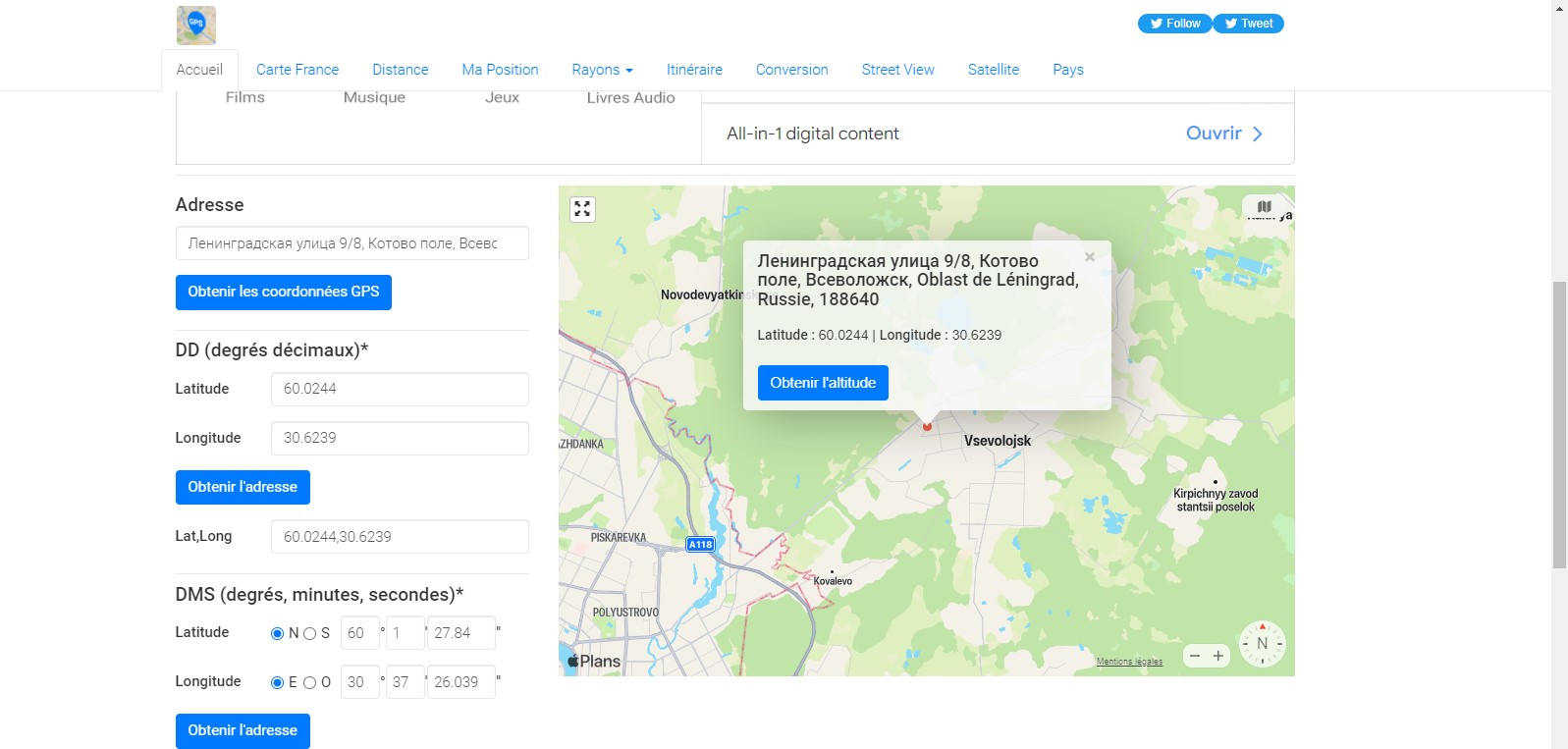 Une fois retranscrits sur un site de données GPS, les éléments de géolocalisation de la vidéo renvoient bien à la ville de Vsevolojsk, à une vingtaine de kilomètres au nord-est de Saint-Pétersbourg.