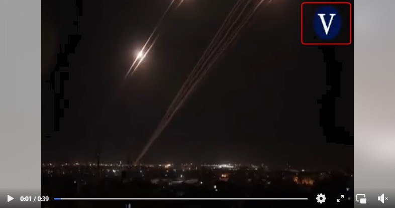 Selon la légende accolée, ces images montrent le lancement de "130 missiles contre Tel Aviv" puis 210 autres, le 11 mai 2021, dont certains avaient "réussi à échapper" au Dôme de fer israélien et avaient "touché différents endroits dans le centre d'Israël et à Beersheva".
