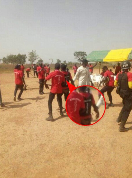 Dans cette publication fin 2019 qui illustre l'ouverture d'un bureau de ce groupe à Kujama, à une vingtaine de kilomètres à l'est de Kaduna, on voit un homme qui porte un gilet pare-balles identique, avec la même inscription et la même police de caractères.