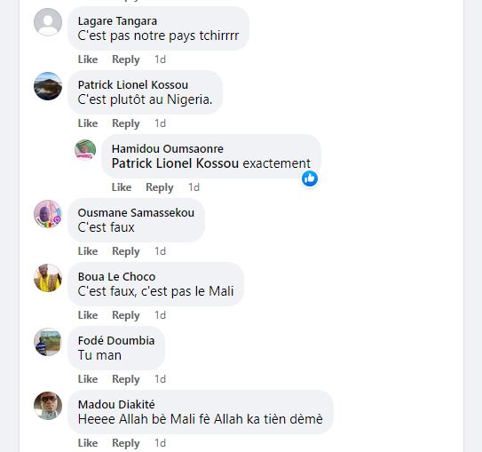 Une supercherie que de nombreux internautes semblent soupçonner dans les commentaires: ils sont très nombreux à émettre des doutes sur le fait que la scène se passe bien au Mali.