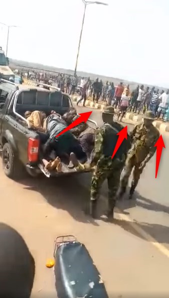 "PAUVRE AFRIQUE", s'attristent les internautes qui partagent une vidéo d'un groupe d'hommes armés, certains en treillis, forçant d'autres hommes à s'entasser à l'arrière d'un pick-up et les frappant violemment.