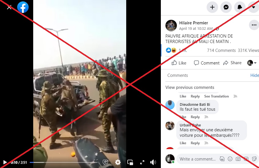 Cette scène montrerait l'"arrestation de terroristes au Mali" au matin du 19 avril. Le pays fait en effet face à une crise sécuritaire de grande ampleur depuis 2012.