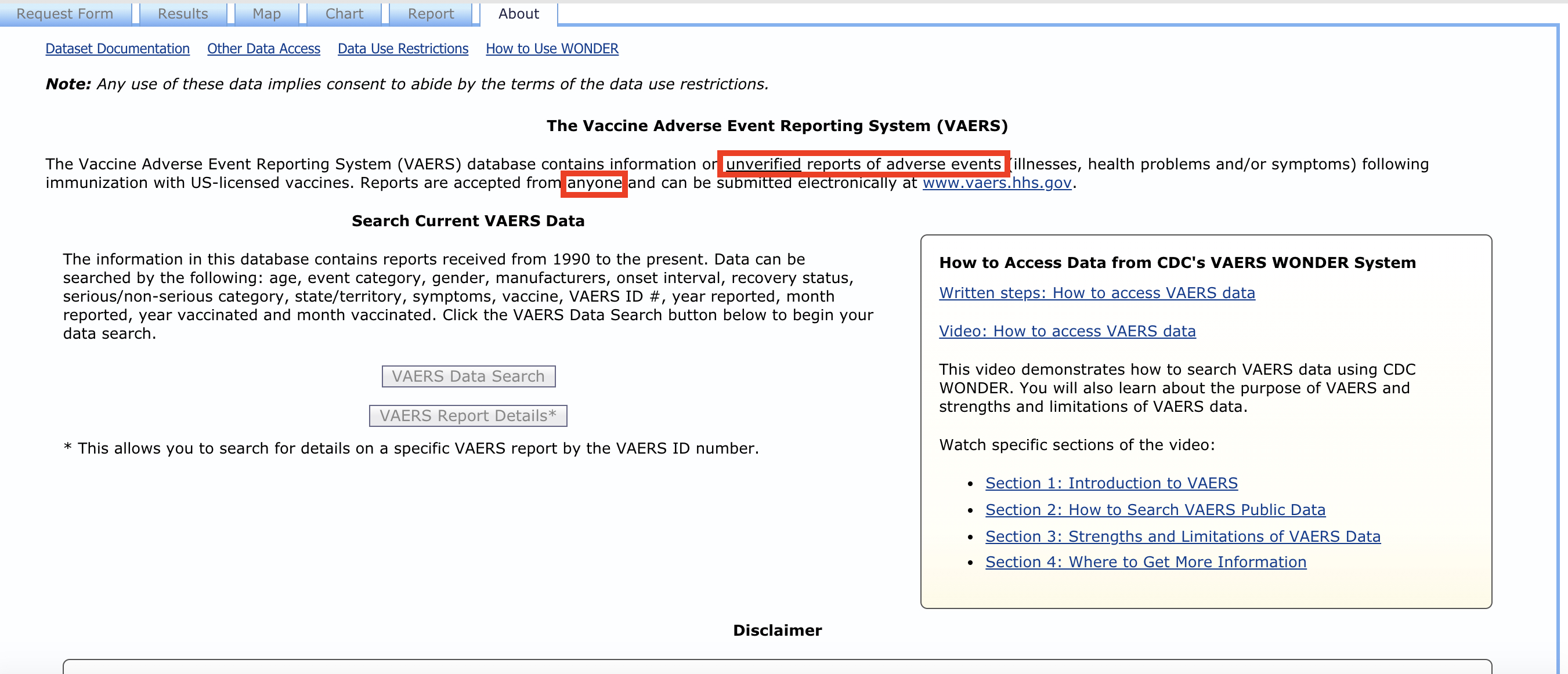 Les données des autorités sanitaires américaines ne viennent pas non plus appuyer son affirmation. Steve Kirsch fait plusieurs fois référence au VAERS (Vaccine Adverse Events Reporting System), une base de données nationale de surveillance des vaccins, gérée à la fois par les Centres américains de contrôle et de prévention des maladies (les CDC).