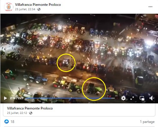 En revanche, le média en ligne Torino Oggi a publié un article, le 20 juillet 2022, titré de la manière suivante : "Villafrance Piemonte vise haut avec son Tractor Beer Fest". Dans le détail, l'article indique que l'objectif de cette "fête de la bière et du tracteur" est de programmer "le plus grand rassemblement de tracteurs jamais organisé dans le Piémont", pour "souligner l'importance de l'agriculture" dans cette région du Nord-Ouest de l'Italie.