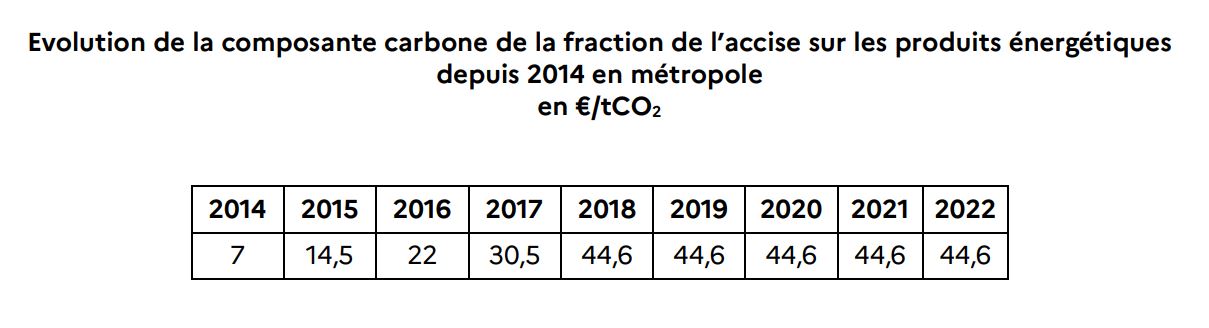 Elle sera finalement instaurée dans le budget 2014 sous François Hollande et devait augmenter progressivement chaque année jusqu'en 2022. Mais face au mouvement des "gilets jaunes", le gouvernement a fait marche arrière en décembre 2018 et gelé son augmentation.