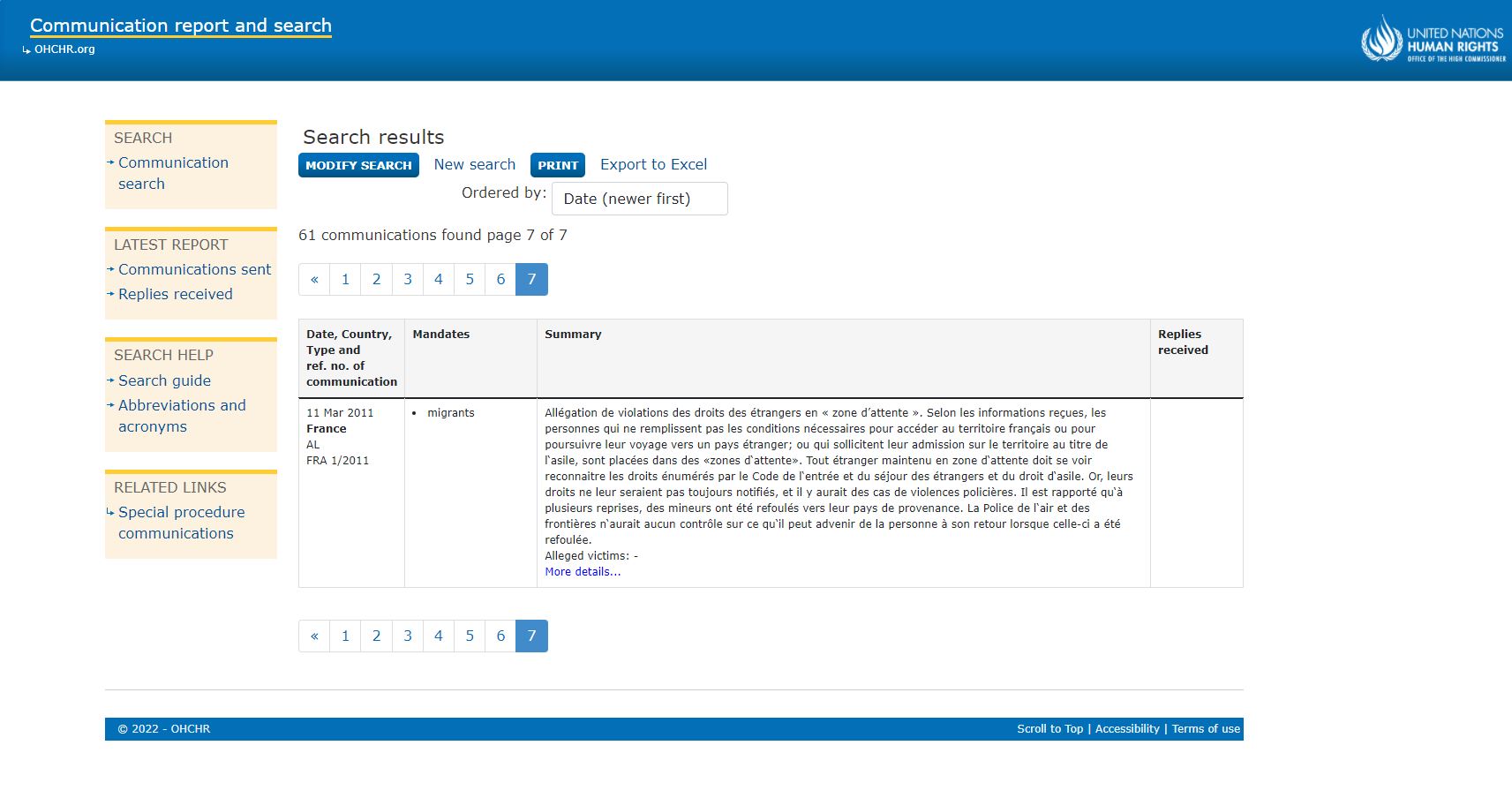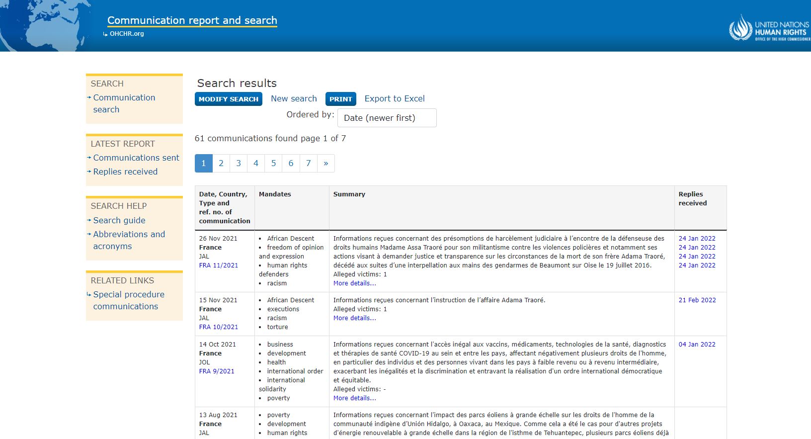 Près de la moitié de ces rapports est antérieure au 7 mai 2017, date de l'élection d'Emmanuel Macron à la présidence française. L'expulsion de migrants du campement de Calais avait par exemple fait l'objet d'inquiétudes de rapporteurs en janvier 2017, tout comme l'évacuation et l'expulsion de Roms, en 2012 puis à nouveau en 2014.