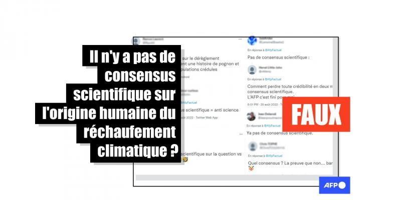 Alors que le Groupement international d'experts sur le climat (GIEC) et de nombreuses méta-études - c'est-à-dire des études qui résument systématiquement l'état de la recherche internationale - concluent que l'activité humaine est responsable du réchauffement climatique, ces internautes remettent en cause l'existence d'un consensus scientifique sur le sujet.