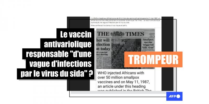 L'OMS a déclaré la variole éradiquée en 1980, au terme d'une campagne de vaccination massive dans les pays les plus touchés, notamment en Afrique. Au même moment étaient détectés les premiers cas de sida dans plusieurs pays d'Afrique centrale. Des publications trompeuses partagées récemment sur Facebook affirment, en s'appuyant sur un article du Times de 1987, que la vaccination antivariolique a provoqué une "vague d'infections au virus du sida", le VIH. Or, à ce jour, aucun lien n'a été prouvé, ont expliqué plusieurs experts à l'AFP. L'article du Times avait par ailleurs déjà été remis en cause à l'époque de sa parution.