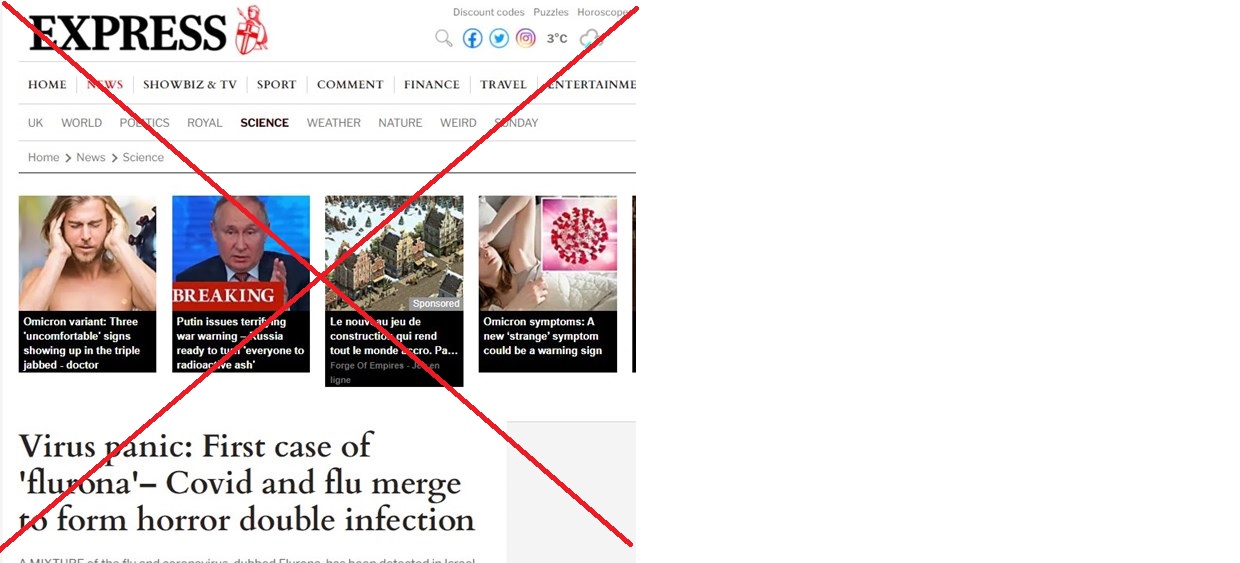 Habitué des articles trompeurs ou exagérés, le site britannique Daily Express n'hésite pas à titrer : "Panique au virus : premier cas de 'flurona' - Le Covid et la grippe se mélangent pour former la double infection de l'horreur" ("Virus panic: First case of 'flurona'– Covid and flu merge to form horror double infection")