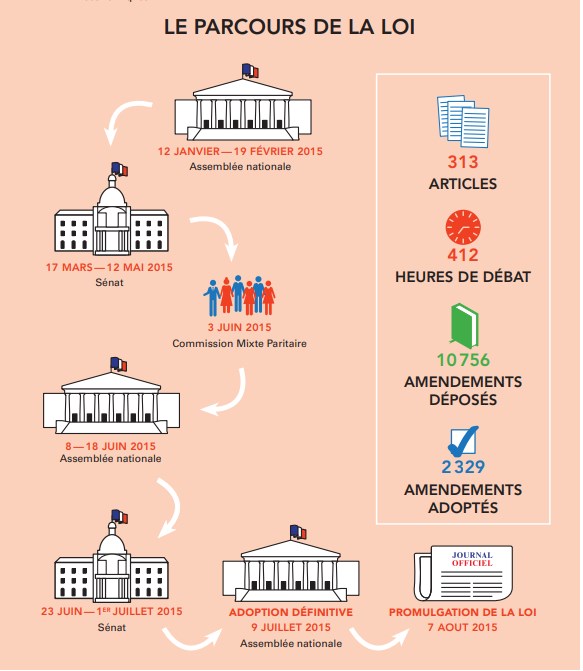 Conscient des réticences, le ministre Emmanuel Macron, dont c'est le grand baptême du feu, se dit ouvert au débat et va s'impliquer très activement dans les discussions parlementaires, qui débutent en janvier 2015, pour tenter de parvenir à un compromis.