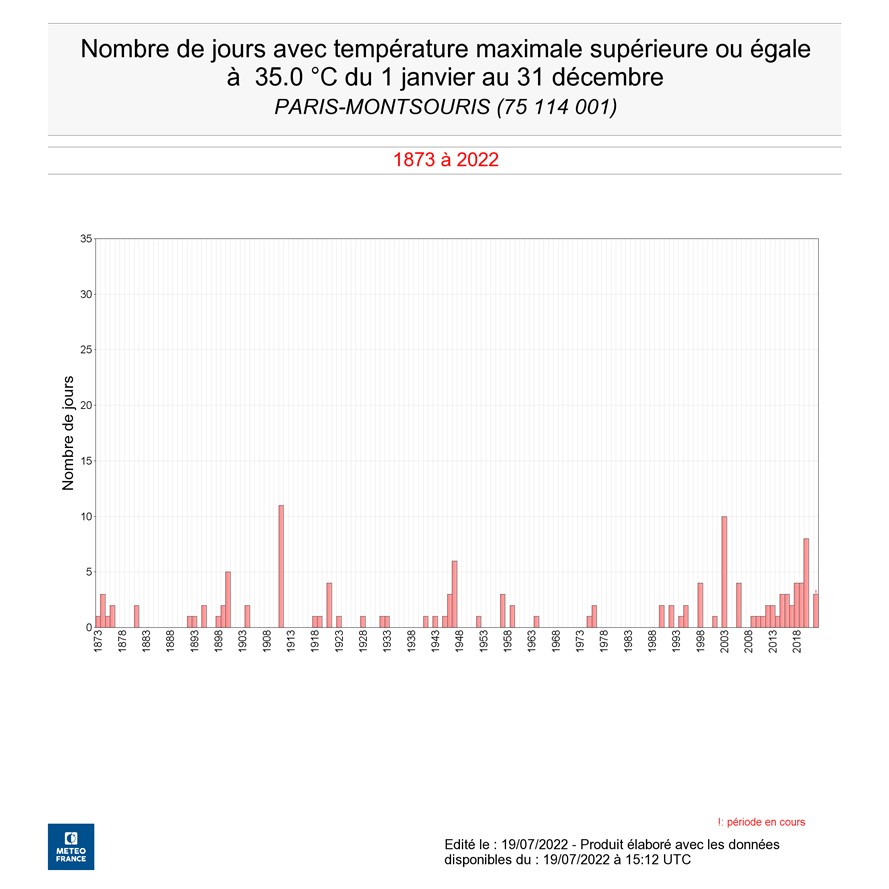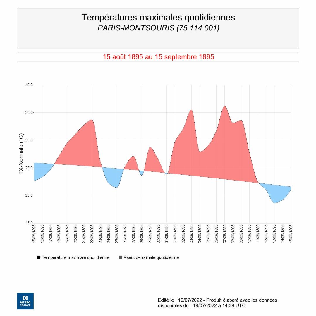 Le 19 juillet 2022, Météo France a fourni à l'AFP la liste de toutes les températures relevées par la station de Paris Montsouris, la plus ancienne station météo de France, entre le 15 août et le 15 septembre 1895.