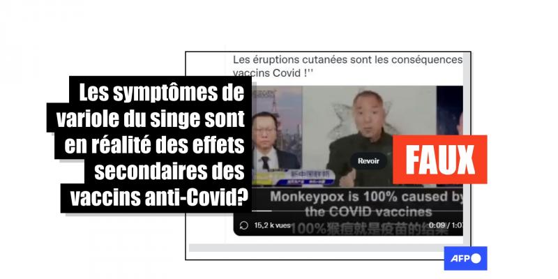 La variole du singe servirait à cacher une flambée d'effets indésirables dus aux vaccins anti-Covid, prétendent de nombreuses publications sur les réseaux sociaux. Elles affirment notamment que les éruptions cutanées généralement associées à la variole du singe seraient en réalité dues au zona et à l'herpès. Cette théorie est pourtant infondée : les cas de variole du singe ne peuvent pas être confondus avec d'autres maladies car ils nécessitent, pour être confirmés, un test biologique permettant d'identifier précisément ce virus ou sa famille de virus, qui est différente de celle du zona et de l'herpès, a expliqué la Direction générale de la santé à l'AFP. La hausse récente de cas de variole du singe dans des zones non endémiques ne peut pas non plus être attribuée à la vaccination anti-Covid, car celle-ci est incapable de "déclencher" la maladie, pointent des spécialistes.
