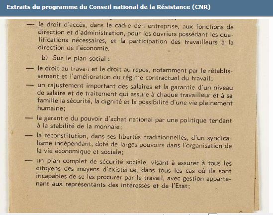 Capture d'écran d'un extrait du programme du Conseil national de la Résistance prise sur le site siv.archives-nationales.culture.gouv.fr.