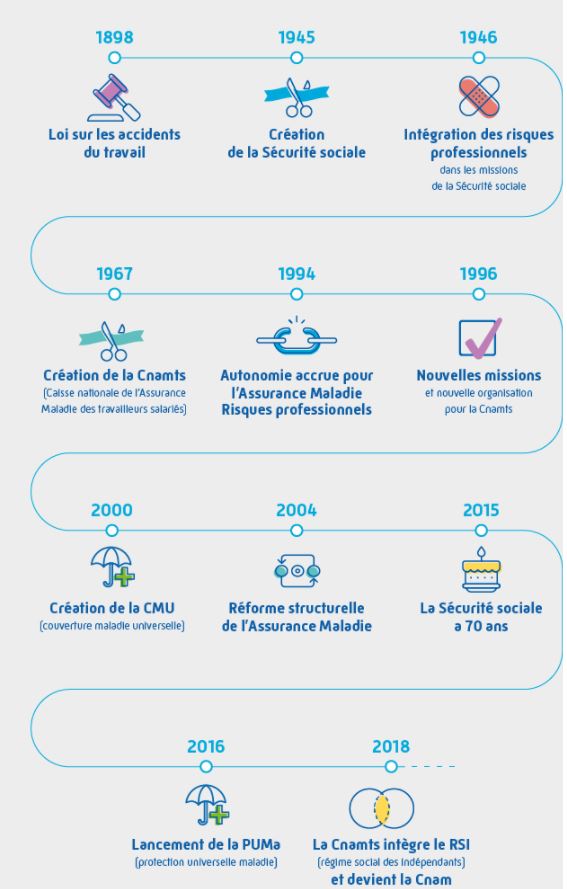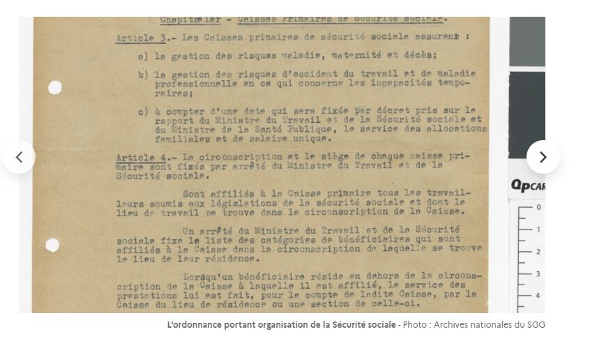 Cette nouvelle organisation fusionne toutes les anciennes assurances (maladie, retraite...) et garantit à chacun de disposer, en toutes circonstances, des moyens nécessaires pour pouvoir vivre, avec sa famille, dans des conditions décentes. La Sécurité sociale commence finalement à fonctionner dès juillet 1946.