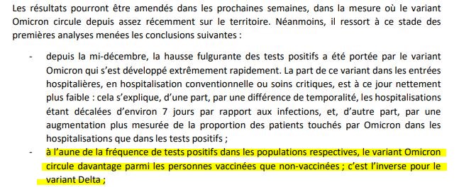 La Drees conclut qu'"à l’aune de la fréquence de tests positifs dans les populations respectives, le variant Omicron circule davantage parmi les personnes vaccinées que non-vaccinées ; c’est l’inverse pour le variant Delta".