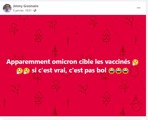 Face à la progression fulgurante du nombre de contaminations au Covid-19 sous la poussée du variant Omicron en France, de nombreuses publications sur les réseaux sociaux soutiennent que ce variant "ciblerait les vaccinés" et que les personnes ayant reçu une ou plusieurs injections anti-Covid seraient actuellement plus exposées au risque d'infection.