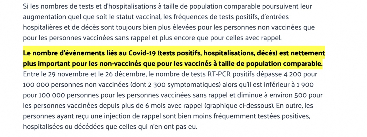 Les spécialistes rappellent qu'il ne faut pas raisonner en termes de valeur absolue, mais à taille de population comparable. Or, "le nombre d'événements liés au Covid-19 (tests positifs, hospitalisations, décès) est nettement plus important pour les non-vaccinés que pour les vaccinés à taille de population comparable", soulignait le 7 janvier la Drees, la cellule de statistiques du ministère de la Santé, dans un communiqué.