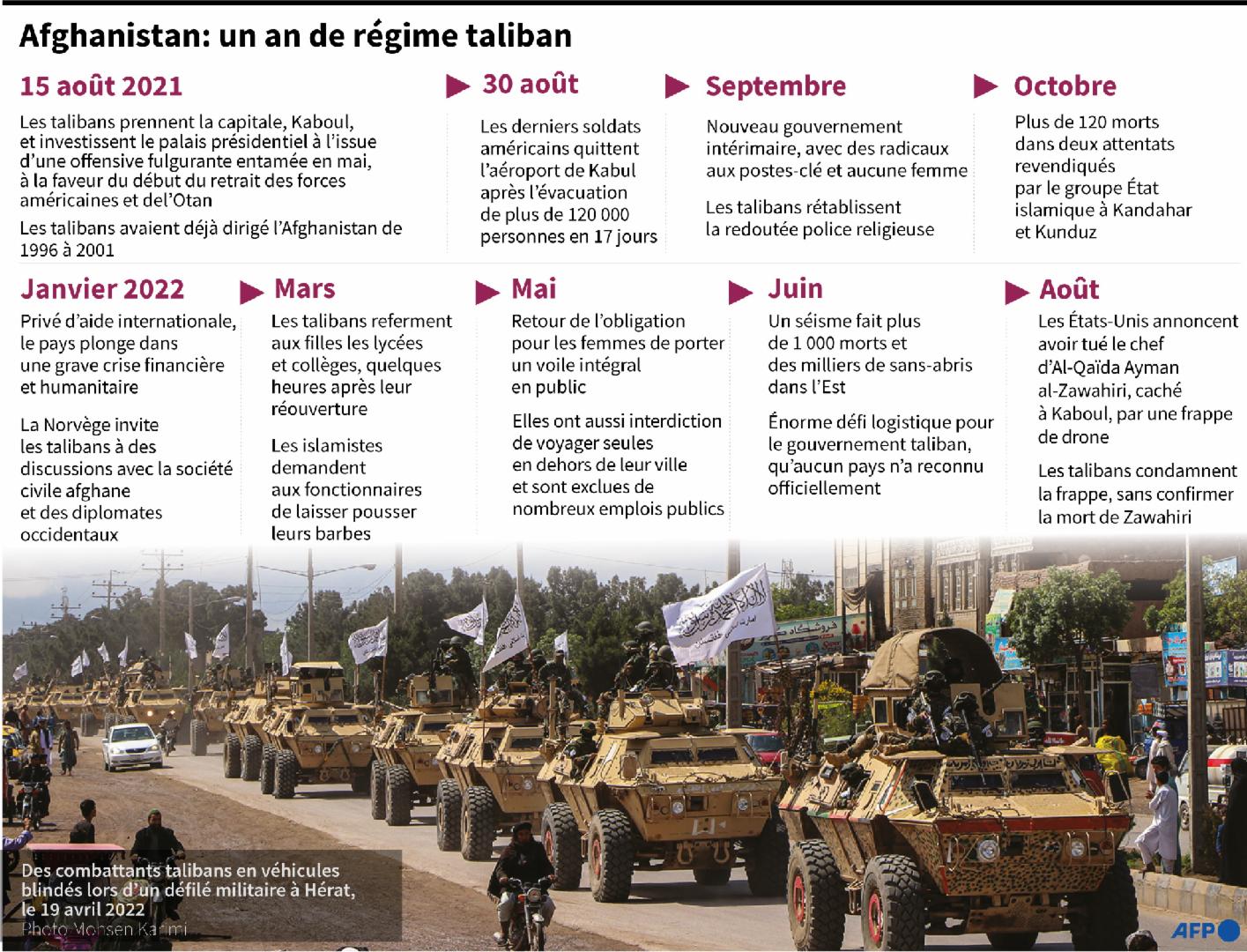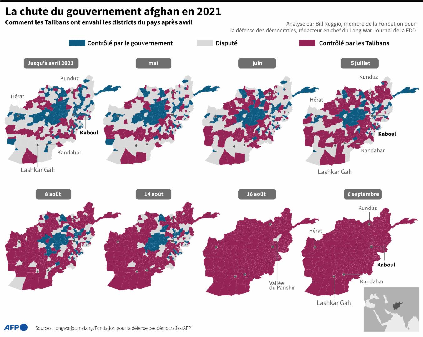 Les talibans ont repris le pouvoir en Afghanistan le 15 août 2021, à l'issue d'une offensive fulgurante entamée en mai à la faveur du début du retrait d'Afghanistan des forces américaines et de l'Otan. Si les violences ont fortement diminué depuis, la crise humanitaire dans le pays s'est rapidement aggravée.
