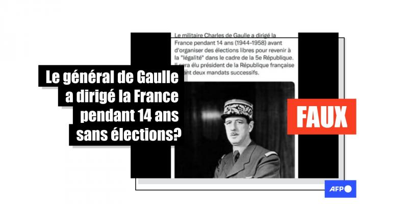 Pourtant, selon plusieurs historiens consultés par l'AFP, cette affirmation est fausse: le général de Gaulle n'était pas au pouvoir en France entre 1944 et 1958.