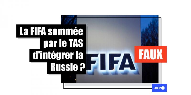 En ce qui concerne la Fifa, la décision du TAS a été rendue le 18 mars. Contrairement à ce qu'avance la publication, le verdict n'est en rien favorable à la Russie. Le Tribunal "n'ordonne pas la réintégration de la Russie" mais plutôt le maintien des sanctions prises par la Fifa. Ce qui signifie que l'équipe russe de football reste exclue des barrages pour le Mondial 2022 de football.