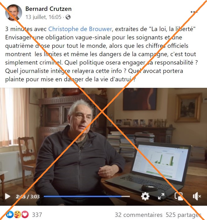 Interrogé au sujet de cette vidéo, le vice-président de l'Ordre des médecins belge, Christian Melot a estimé auprès de l'AFP le 20 juillet 2022 que Christophe de Brouwer, statisticien à la retraite, "a clairement un message anti-vaccin".