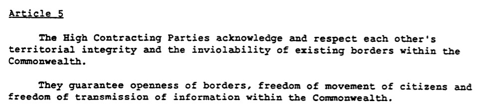 L'organisation dispose de son propre site internet qui comporte des informations détailles sur la CEI, dont un ensemble de documents historiques tels que l'accord fondateur de la CEI. Selon l'article 5 de ce texte, les parties "reconnaissent et respectent l'intégralité territoriale de chacune ainsi que l'inviolabilité des frontières existantes au sein de la Communauté".