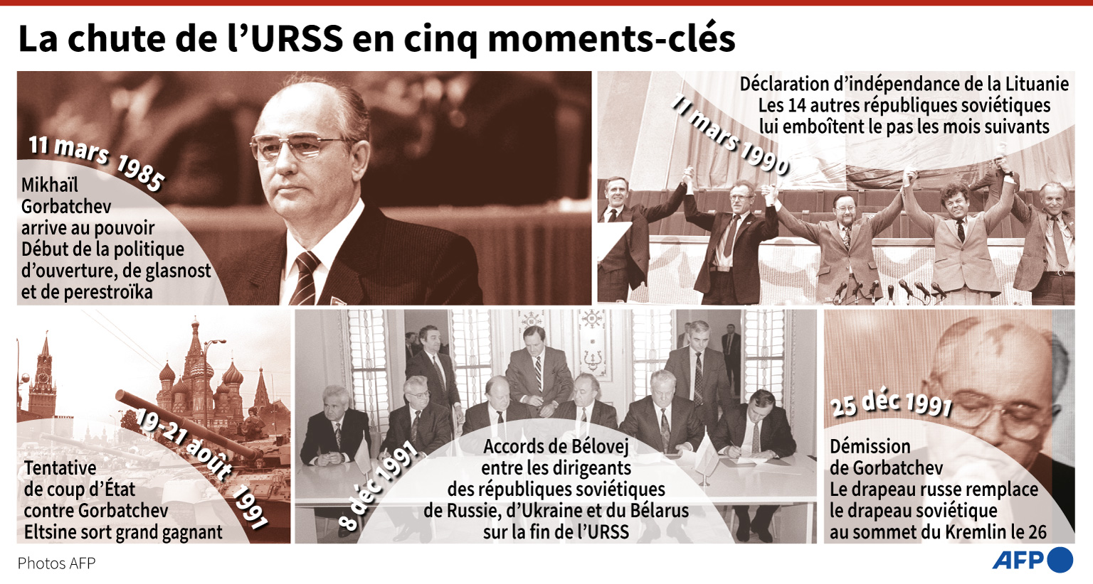 Le 8 décembre 1991, les dirigeants des trois plus grandes républiques au sein de l'URSS - la Russie, l'Ukraine et le Belarus - ont signé l'accord fondateur de la Communauté des Etats indépendants (CEI) en se présentant comme Etats souverains. L'URSS dissoute, la CEI a été ensuite rejointe par huit autres pays.
