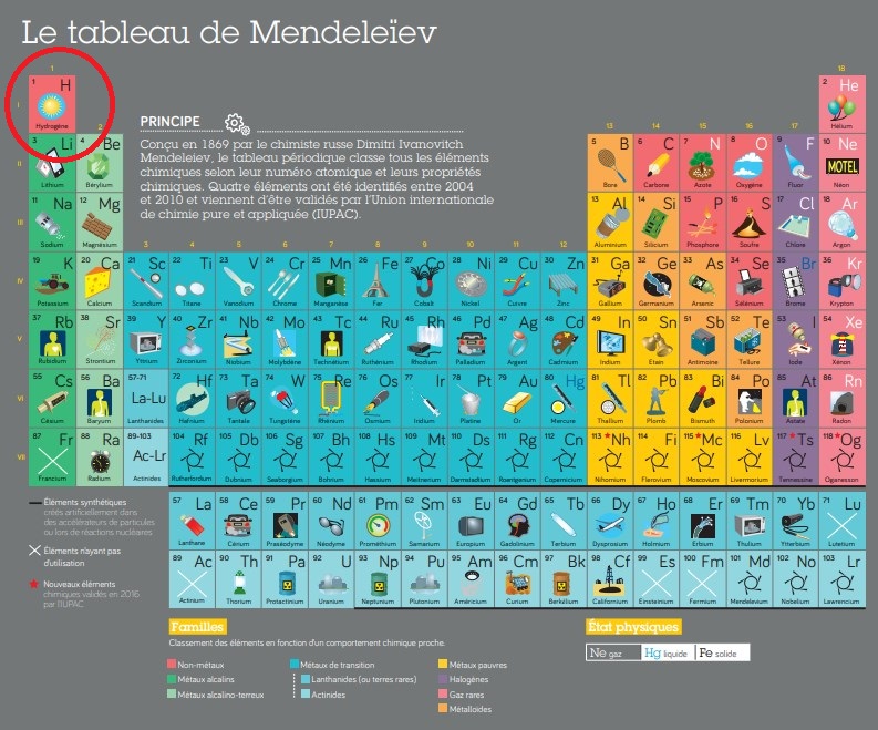 La première assertion est exacte : l'hydrogène, principal constituant des étoiles comme le soleil, est l'élément le plus abondant dans l'univers. Il est le plus petit, le plus simple et le plus léger des atomes, le tout premier sur la liste du tableau de Mendeleïev qui classe l'ensemble des éléments chimiques selon leur numéro atomique et leurs propriétés.