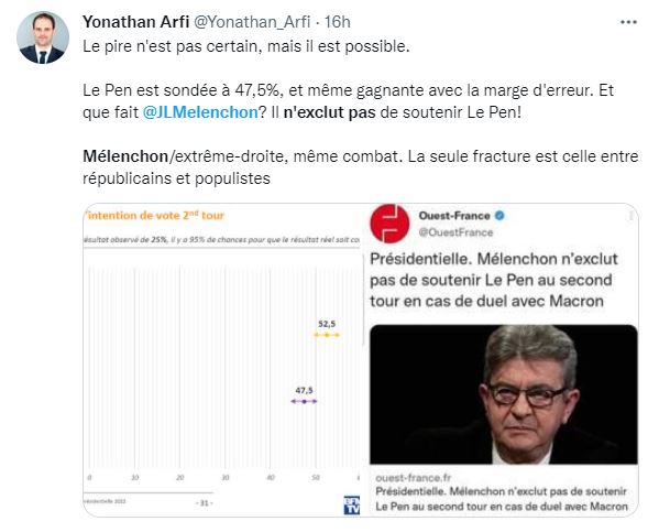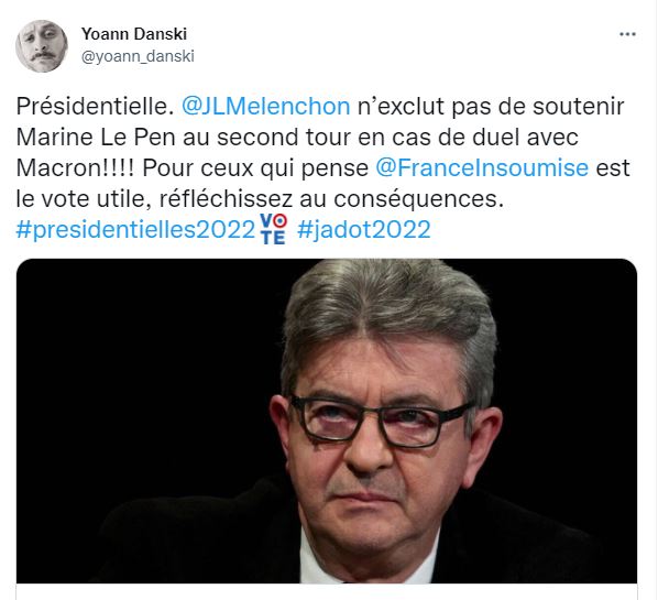 A quelques encablures du premier tour de la présidentielle (10 avril) une intention prêtée à Jean-Luc Mélenchon faisait très vivement réagir sur les réseaux sociaux le 31 mars. "Qu'est-ce qui lui arrive au Mélenchon ?", "On parle bien de la gauche là ?", fustigeaient plusieurs internautes.