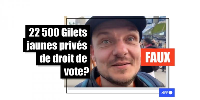 Des dizaines de milliers de gilets jaunes privés de droit de vote pour la présidentielle ? C'est ce qu'affirme un gilet jaune dans une vidéo relayée plusieurs milliers de fois depuis le 15 avril. Ils seraient selon lui plus de 22.500 à avoir été condamnés à cause d'une loi Macron de 2020". Rien ne vient étayer à ce jour cette accusation qui fait état d'un nombre disproportionné au regard des 3200 condamnations prononcées contre des gilets jaunes entre novembre 2018 et novembre 2019 selon les données du ministère de la Justice. Cette allégation - et particulièrement son ordre de grandeur - est également démentie par plusieurs avocats du mouvement. De plus, ils assurent n'avoir constaté aucun cas d'application de la loi anti-casseurs de 2019 qui prévoit notamment l'interdiction du droit de vote en cas de condamnation pour des délits en lien avec la participation à une manifestation.