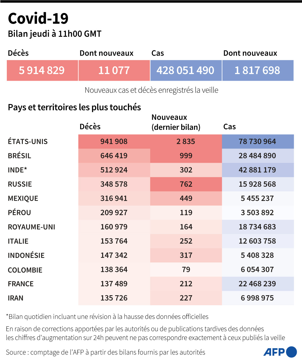Un point partagé par le ministère de la Santé israélien contacté par l'AFP. "Les donnés israéliennes montrent que le vaccin prévient les cas graves. Le nombre de patients non vaccinés hospitalisés dans un état grave est cinq à huit fois plus important (selon l'âge) que les patients vaccinés. Nous observons la même chose concernant la mortalité."