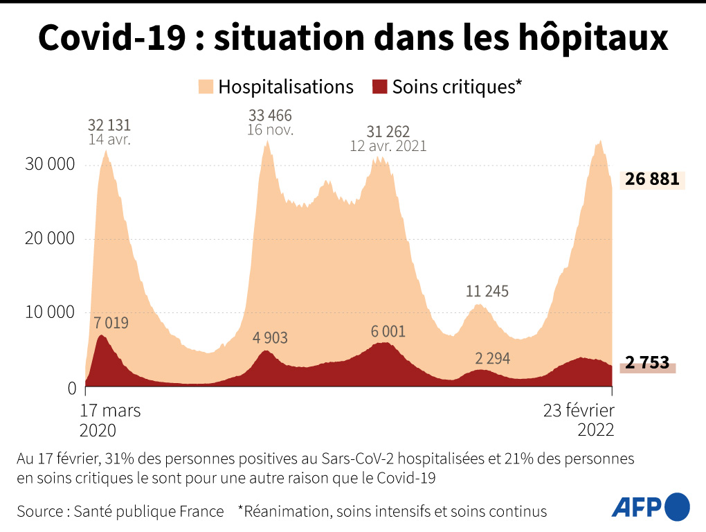 Après une hausse sensible du nombre de cas dans le pays vers la fin du mois de janvier, la situation s'est aujourd'hui nettement améliorée, avec une baisse enregistrée de plus de 30% des cas graves entre le 30 janvier et le 22 février 2022. Alors que l'on comptait plus de 60 morts par jour vers la fin du mois de janvier, leur nombre a été divisé de moitié au 22 février.