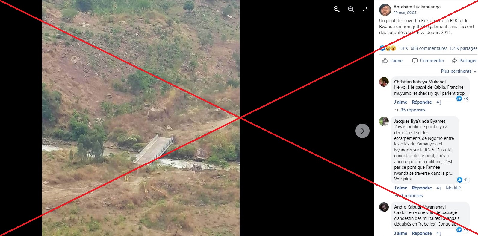 Dans les commentaires qui accompagnent la publication virale, des internautes affirment que ce pont sert de passage à des militaires rwandais pour pénétrer en RDC. Le ministre rwandais des Affaires étrangères, Vincent Biruta, a lui affirmé lors d'une conférence de presse le 31 mai qu’"il n'y a pas de présence de soldats rwandais en RDC".