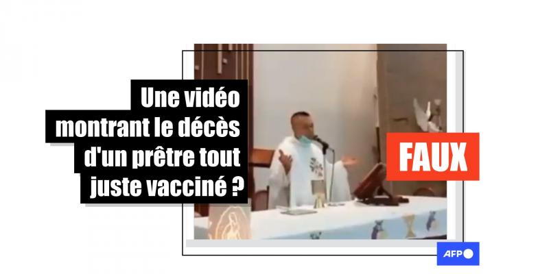 Une vidéo montrant un prêtre mexicain s'évanouir en pleine messe est partagée par des internautes français soutenant que l'ecclésiastique serait "mort après avoir été vacciné contre le Covid-19". C'est faux, le père Ángel Cuevas, qui apparaît sur les images et est à la tête de l'église Notre-Dame de Guadalupe, à Acapulco, est bien vivant et un journaliste de l'AFP a pu le rencontrer le 25 novembre 2021, près de deux mois après les faits. Le prêtre a expliqué que son évanouissement "n'était en aucun cas une conséquence du vaccin", et a assuré aller "parfaitement bien" désormais.