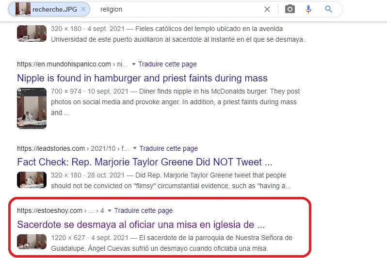 En effectuant une recherche d'image inversée sur Google, une occurrence de la vidéo apparaît dans un article en espagnol, publié le 4 septembre sur le site mexicain 24-horas.
