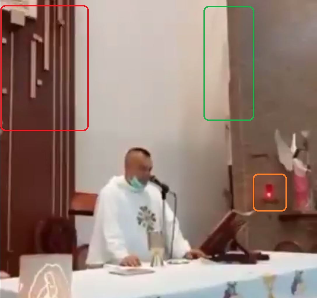 Sur les images, un prêtre en train d'animer une messe en espagnol commence à vaciller, et est rattrapé à bout de bras par une femme, alors qu'il s'effondre derrière l'autel. L'extrait se termine en montrant plusieurs fidèles venir lui porter secours.
