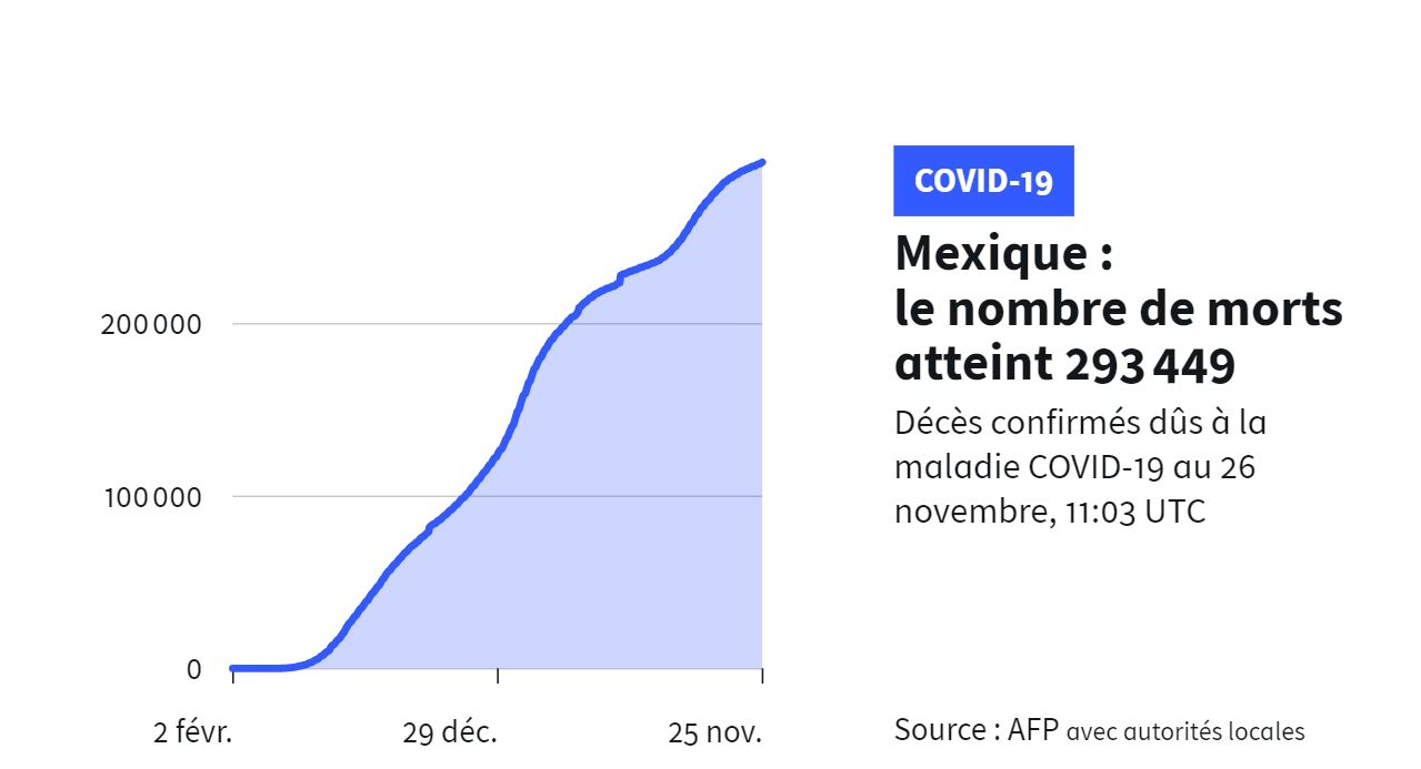 Le Mexique est le quatrième pays le plus endeuillé au monde par la pandémie avec 293.449 morts du Covid, après les Etats-Unis, le Brésil et l'Inde.