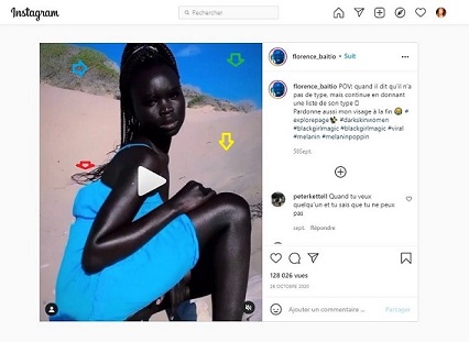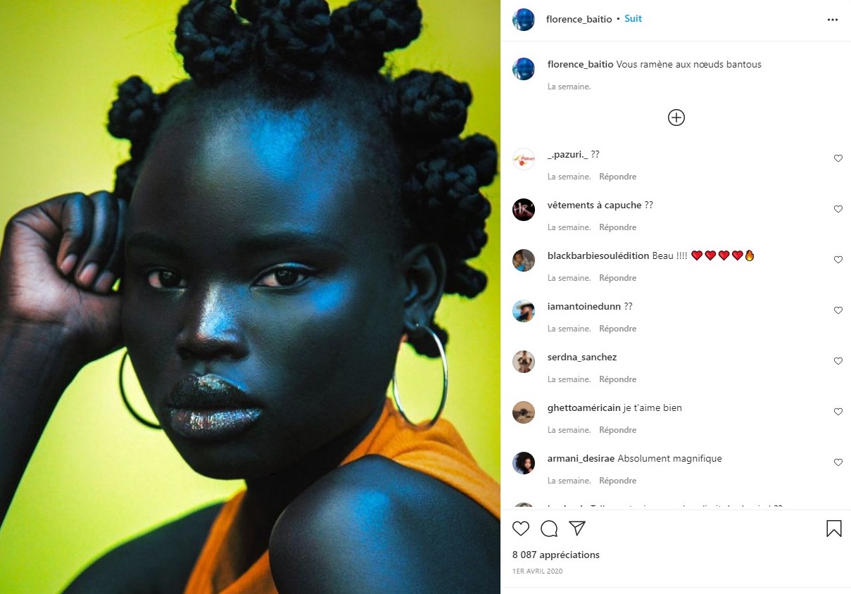 En procédant à une recherche d’images inversée avec le moteur de recherche Yandex, on retrouve en effet l'origine de l'image, qui permet d'atterrir sur le compte Instagram d'une autre mannequin noire, Florence Baitio, qui a elle aussi un teint de peau très foncé. Son compte Instagram est localisé à Perth, en Australie.