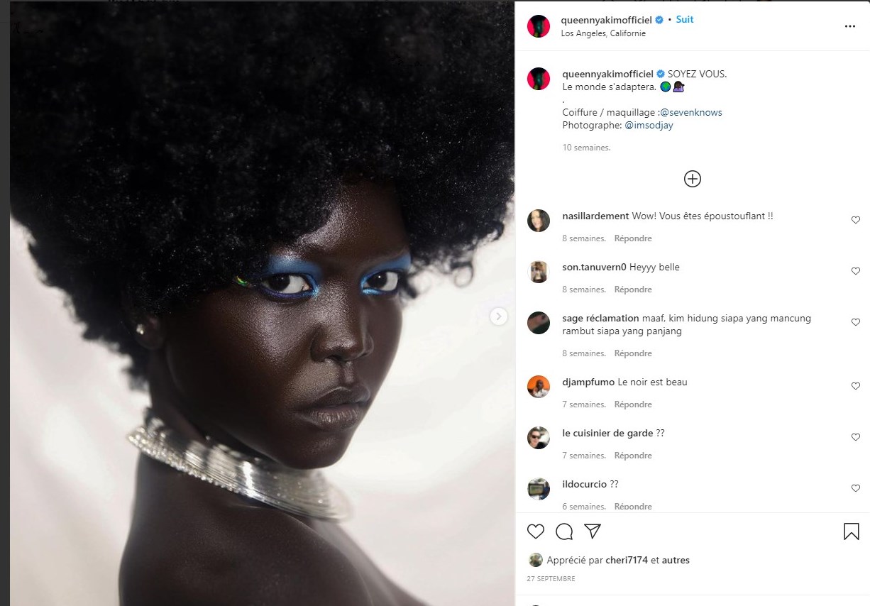 Selon le magazine de mode américain destiné aux adolescents, TeenVogue, auquel s'était confiée en 2017 Nyakim Gatwech, 24 ans à l'époque et surnommée "Queen of dark" (ou "Reine des ténèbres" en français), est un mannequin né au Soudan (aujourd'hui Sud-Soudan), qui vit aux Etats-Unis.