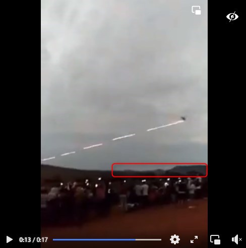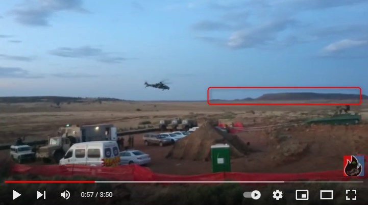 En cherchant donc les termes "AH-2 Rooivalk firing" sur YouTube pour comparer la vidéo virale à celles déjà disponibles en ligne du même type d'hélicoptère, on trouve cette vidéo, tournée non loin de Bloemfontein, à De Brug, dans le centre de l'Afrique du Sud et mise en ligne le 29 avril 2019. A l'arrière-plan de ces images, on aperçoit un relief similaire à celui visible dans la vidéo virale que nous vérifions.