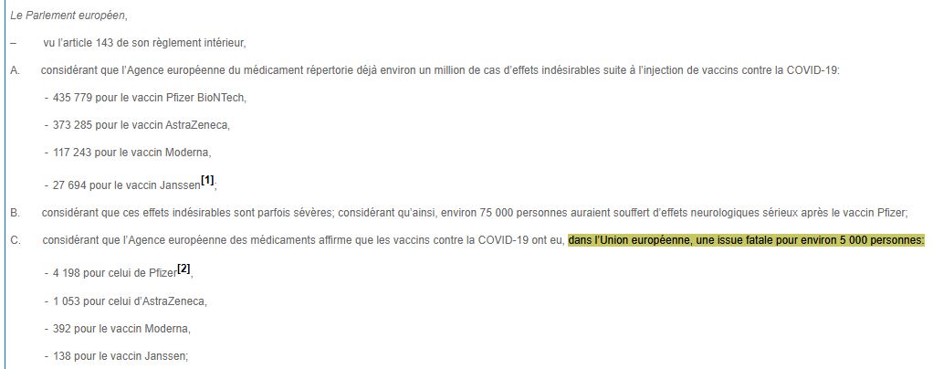 En outre, la proposition de l'eurodéputée de créer un "fonds d'indemnisation pour les victimes des vaccins contre le Covid-19", repose sur une interprétation trompeuse des données de la base de données européenne qui recense les effets secondaires signalés après la vaccination, mais pas nécessairement à cause de la vaccination, comme le rappelle l'Agence européenne des médicaments (AEM).