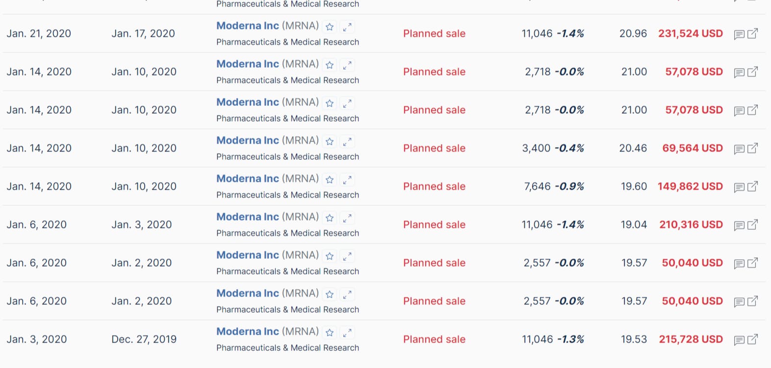 Comme pour toute entreprise cotées en Bourse, toutes les données sur les ventes d'actions de Moderna par son dirigeant sont disponibles en accès libre sur une page dédiée sur le site internet de la SEC.
