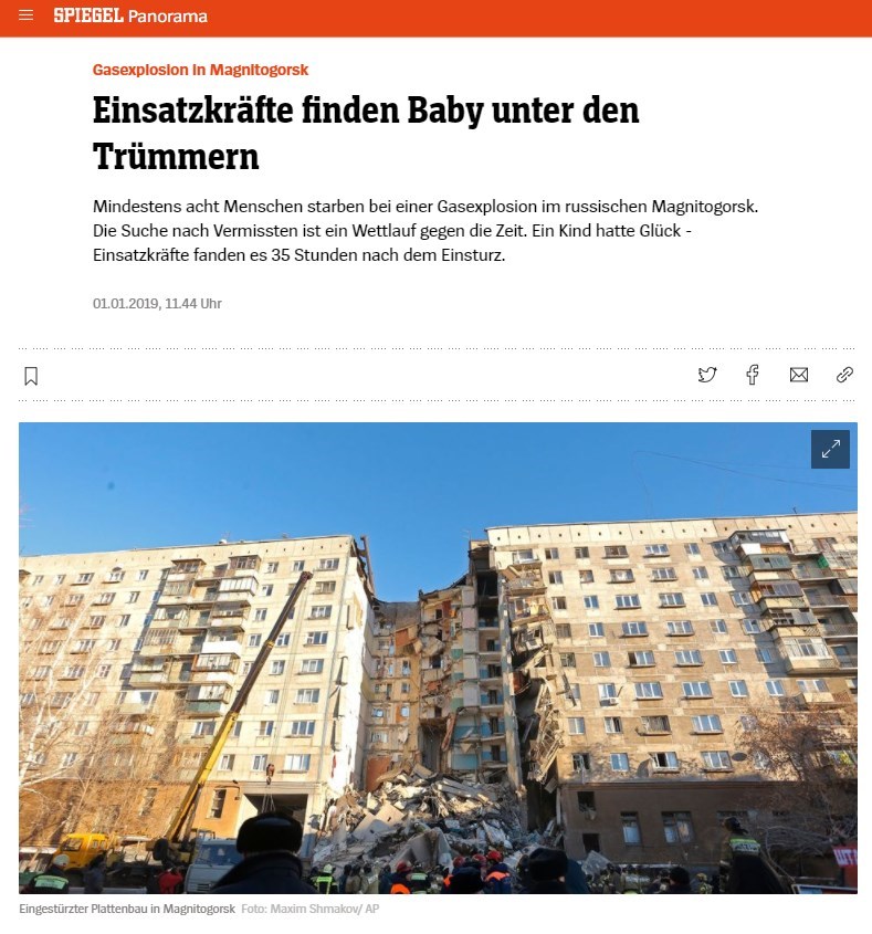 Une publication massivement relayée sur les réseaux sociaux en français et en allemand assure que le tabloïd a utilisé la photographie d'une explosion de gaz en Russie, survenue en 2018, afin d'illustrer les dégâts causés par le bombardement d'un immeuble en Ukraine.