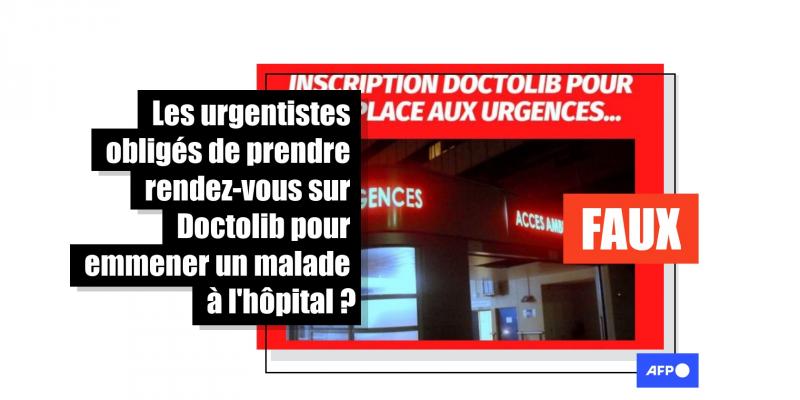 Contacté par l'AFP, Mathias Wargon, chef du service des urgences et du Service mobile d'urgence et de réanimation (SMUR) au centre hospitalier Delafontaine, à Saint-Denis, dément également. "C'est complètement faux. Il n'est pas du tout question de prendre rendez-vous sur Doctolib pour venir aux urgences."