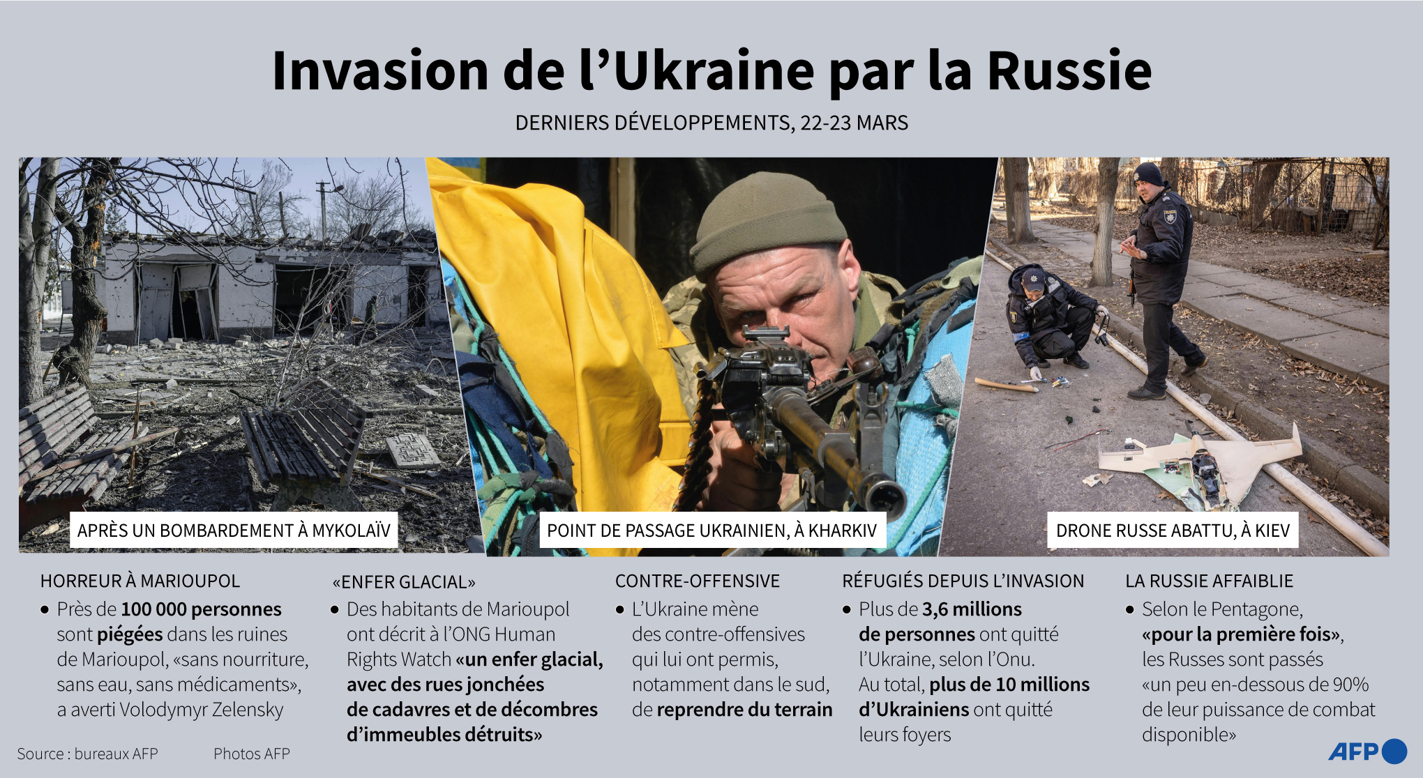 L'Europe n'avait pas connu de flot aussi rapide de réfugiés depuis la Deuxième guerre mondiale : plus de 3,5 millions de personnes ont fui l'Ukraine et les combats déclenchés par l'invasion de l'armée russe le 24 février, selon le décompte de l'ONU publié le 22 mars.