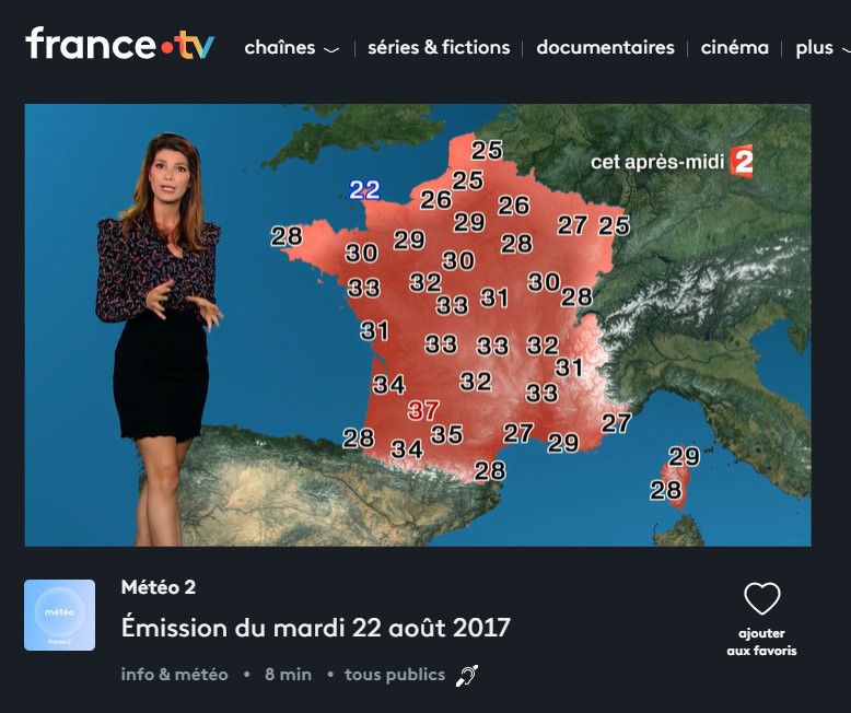 La première carte a bien été diffusée le 22 août 2017 sur TF1 : le replay de ce bulletin météo est disponible sur le site de la chaîne.