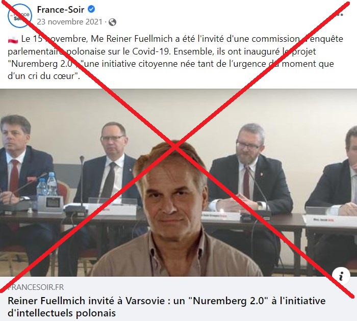 Cette affirmation est toutefois erronée : aucune commission d'enquête parlementaire n'a été créée sur le Covid-19, ont indiqué à l'AFP les services de la Chambre basse polonaise, et l'évènement auquel participait M. Fuellmich n'était un simple panel sans aucun pouvoir d'enquête.