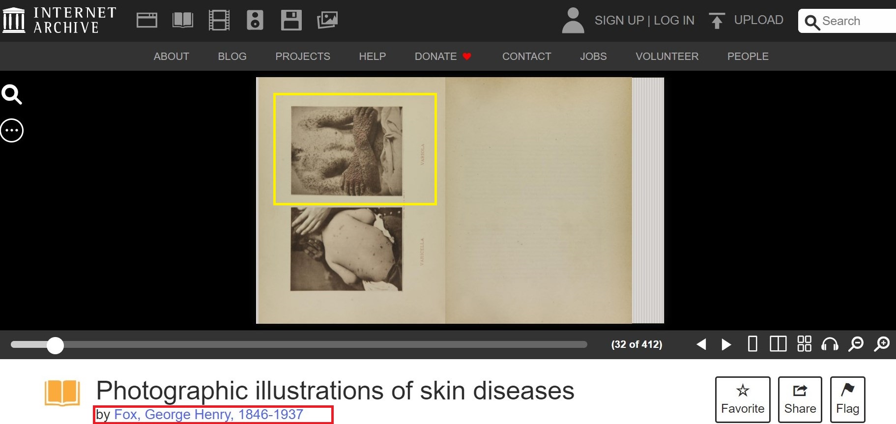 Les résultats d’une rapide recherche sur Google renseignent que Georges Henry Fox était un dermatologue américain. Il a d’ailleurs publié un livre illustratif des maladies de la peau. A la page 32 de cet ouvrage archivé, se trouve la photo utilisée pour la publication trompeuse sur Facebook. Elle y montre effectivement un patient atteint de variole.